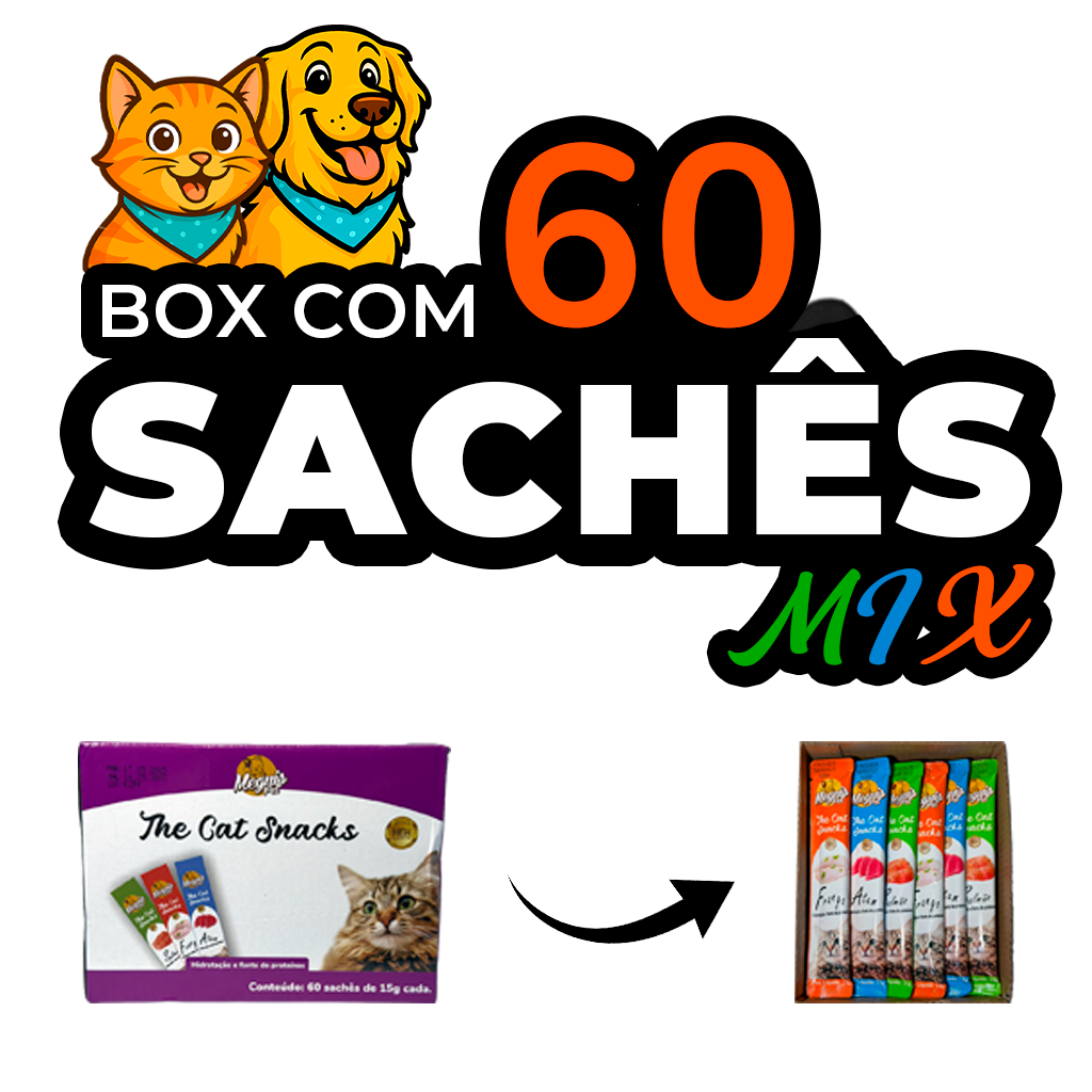 MeguisBox-60 Petisco Snack Cremoso p/Gatos 20 Frango – 20 Atum – 20 Salmao Total 900g – 60 saches + Colher Espremedora